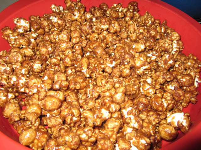 Voor de karamel popcorn heb ik dit recept gebruikt. We hadden alleen de helft aan popcorn gemaakt en mijn oven is ook niet zo groot, dus ik heb de helft genomen. De Nederlandse versie van het recept: