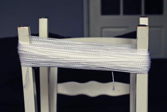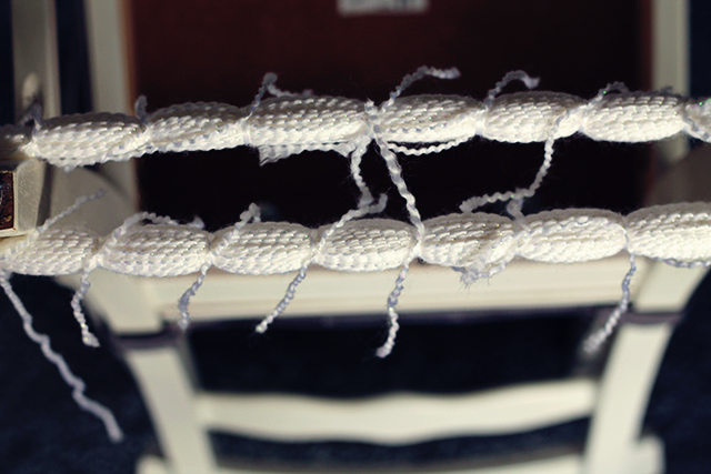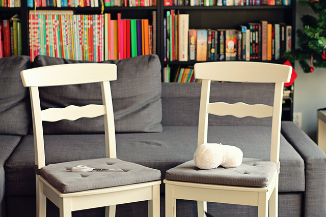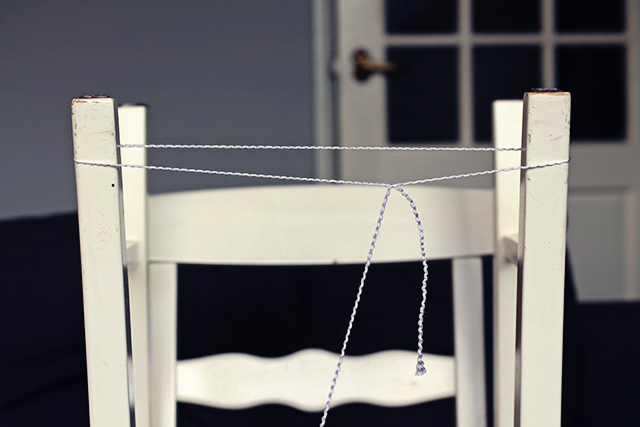 Zet een stoel op-z’n-kop boven op een andere stoel, zodat de poten vrij zijn en je zo makkelijk het garen erom kunt winden.