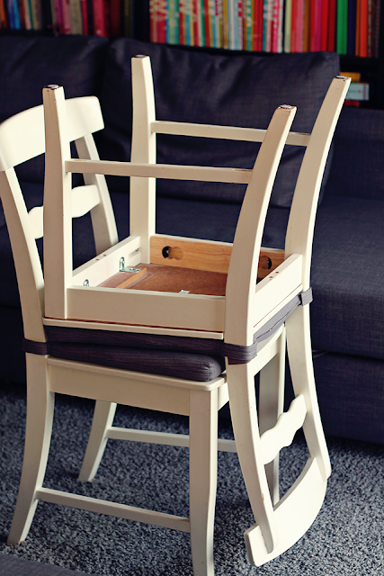 Schuif je knutselwerk van de stoelpoten af en leg het op een vlak oppervlak.