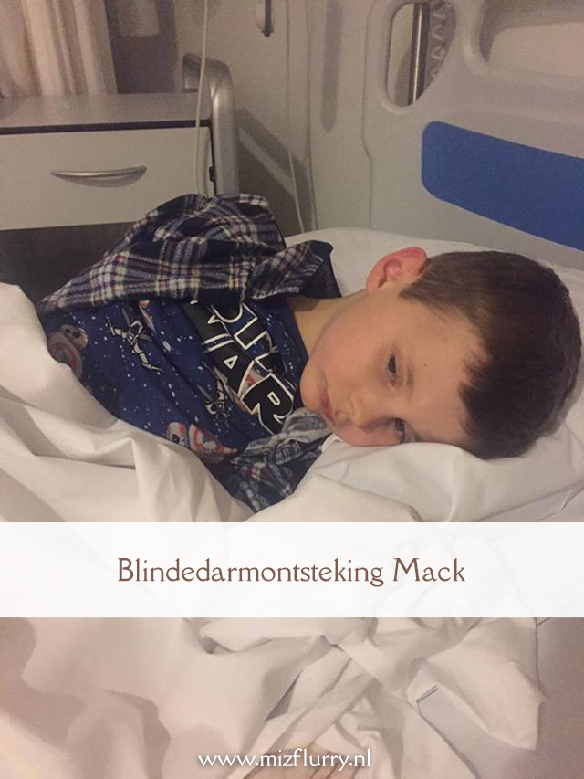 De volgende ochtend was hij nog steeds niet lekker. We tilden hem naar beneden en hij zei dat hij niet kon lopen omdat z’n buik zo’n pijn deed. In principe bleef hij weer op de bank hangen, maar toen hij naar de wc moest, moesten we hem ook tillen. Het tillen deed hem ook pijn, behalve als we hem met z’n benen opgevouwen tilde. En hij heeft een hele hoge pijngrens. Ik zat al te twijfelen om de dokter te bellen, maar hij had natuurlijk ook 24 uur niets gegeten, dus we dachten dat zijn buik misschien daarom zo’n pijn deed. We besloten om hem eerst wat te laten eten en dan een wat paracetamol te geven om te kijken of dat het was. Maar hij wilde geeneens een bolletje eten, terwijl hij daar normaal dol op is. Een paar slurpjes knijpfruit was alles wat ik er in kreeg. Mijn schoonmoeder noemde toen in de familiewhatsapp-groep voor het eerst een blindedarmontsteking, daar had ik nog helemaal niet aan gedacht. Toen mijn zus, die jaren op de huisartsenpost gewerkt heeft en gealarmeerd was door het feit dat hij zo’n pijn had bij het strekken van z’n benen, er ook aan dacht, heb ik de huisarts gebeld. Daar konden we binnen 20 minuten terecht. Mack kon gelukkig in de buggy van Kate zitten en om tien over half 11 werd hij voor het eerst onderzocht. De huisarts dacht ook eerst aan een maag-darmontsteking, en als gevolg daarvan misschien een verstopping. Hij had geen hoge koorts of rechts pijn wanneer ze links op z’n buik drukte, wat wel een typisch verschijnsel van een blindedarmonsteking schijnt te zijn. Maar ze vond het toch wel heel vreemd dat hij niet wilde lopen, dus werden we naar huis gestuurd met zakjes om z’n ontlasting zachter maken, maar ze wilde hem om half 4 graag nog een keer zien.
