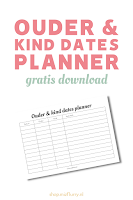Voor mij is het een ouder-kind-date als je met één kind samen iets leuks gaat doen. Echt even qualitytime dus en aandacht voor elkaar. (Tip: spreek met jezelf of samen af, afhankelijk van de leeftijd van je kind, dat de mobiele telefoon zo min mogelijk gebruikt wordt.) Dit kun je van tevoren plannen, maar spontaan telt natuurlijk ook! Wil je ervoor zorgen dat ieder kind (ongeveer) even vaak aan de beurt komt (en elke ouder ook ????), dan is plannen soms wel handig. Daarvoor kun je deze handige printable gebruiken: Ouder en kind dates planner.