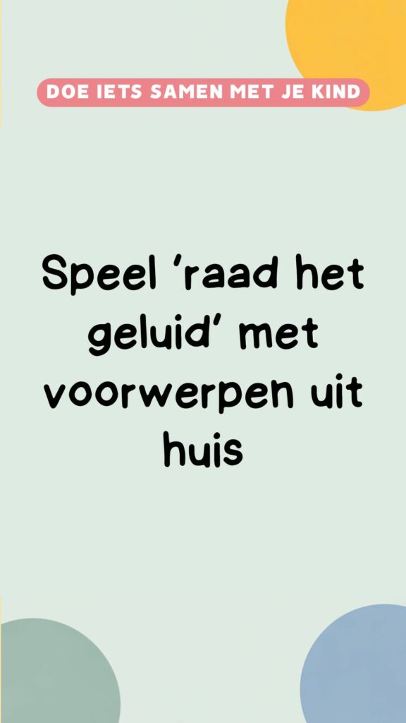 Verzamel voorwerpen uit huis (een lepel, een rits, papier dat scheurt, etc.) en laat je kind(eren) met gesloten ogen raden wat ze horen. Gegarandeerd gegiechel!