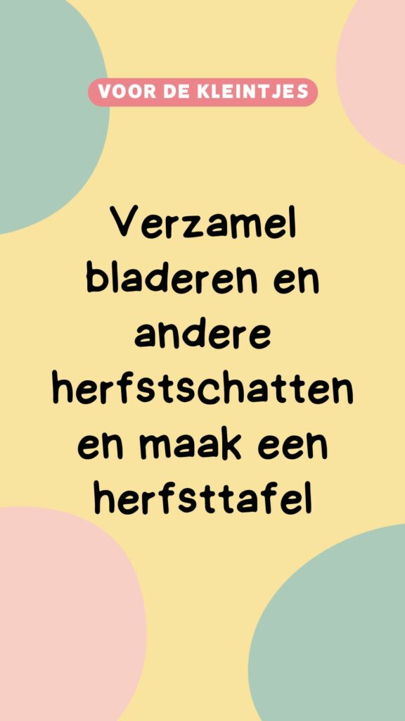 De herfst is nu écht begonnen. De ochtenden voelen frisser, de blaadjes verkleuren langzaam en misschien heb je zelfs al een eerste appeltaart gebakken. Deze week draait om verzamelen – niet alleen bladeren, maar ook fijne momentjes voor jezelf en met elkaar. Laat je inspireren door deze mix van creatieve, actieve en reflectieve activiteiten. Je hoeft ze niet allemaal te doen – kies wat past. En vooral: maak samen herinneringen.